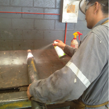 El método NDT de líquidos penetrantes (PT) es comúnmente usado para la detección de discontinuidades longitudinales y transversales en el interior y exterior de superficies de áreas de alto esfuerzo.